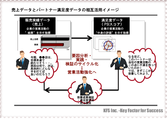 「パートナーの満足度向上→→パートナーの貴社製品&サービスに対する拡販意欲の向上→→貴社の売上向上」